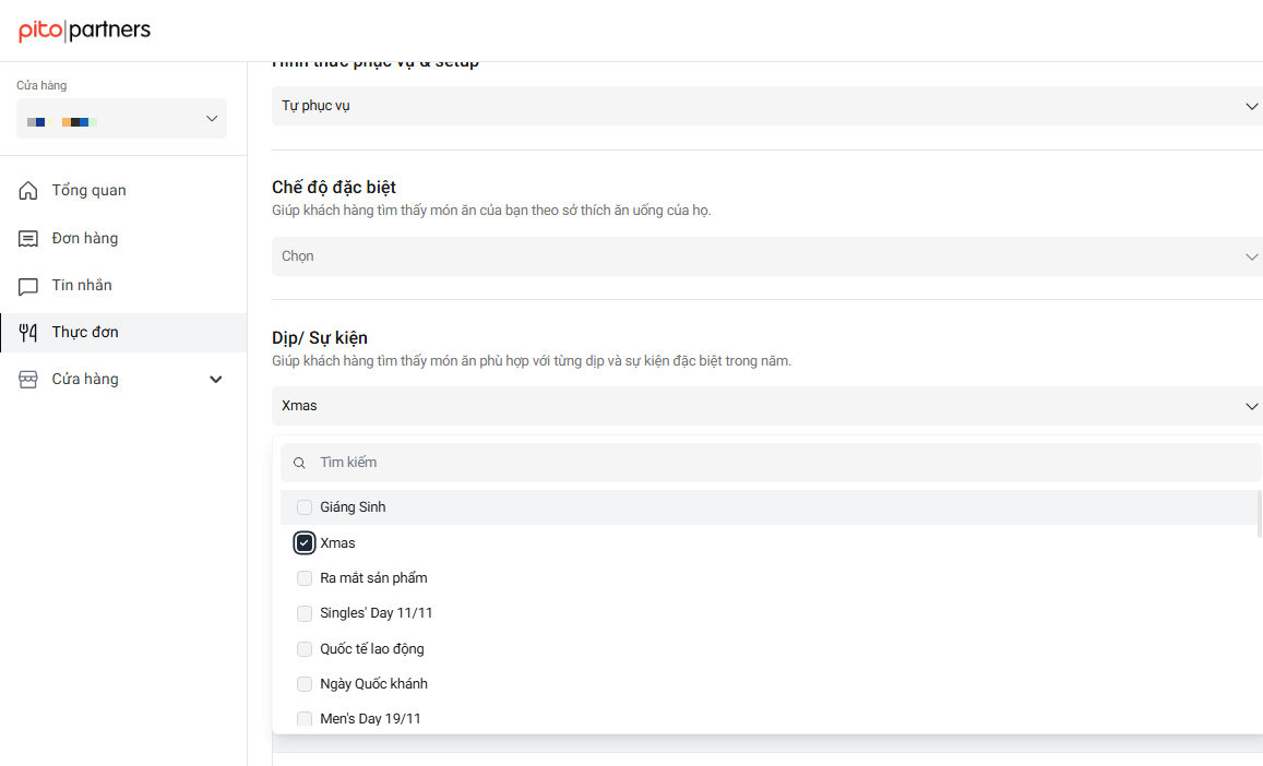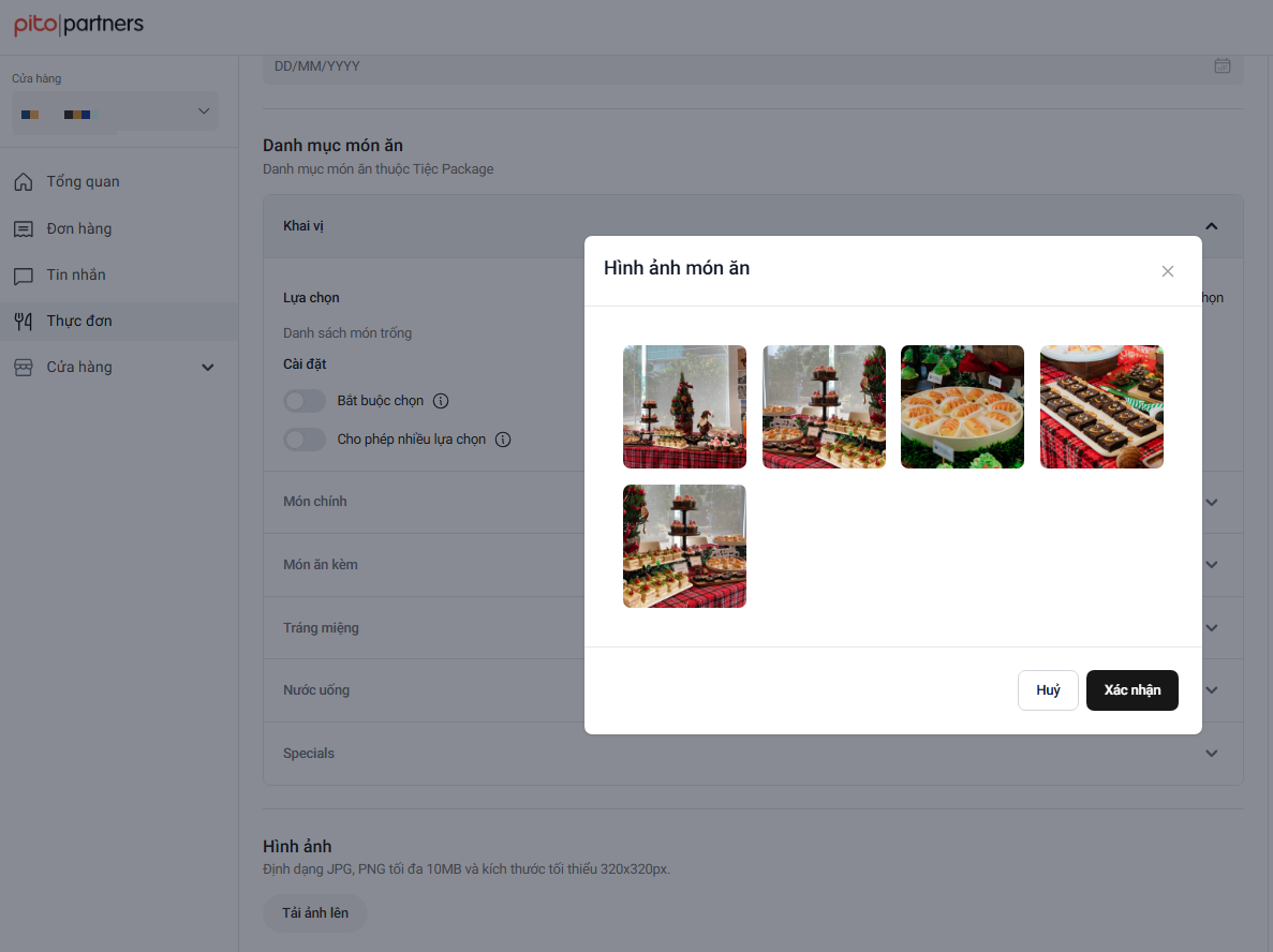 Tải hình ảnh: là hình ảnh thật của tiệc, món ăn có trong thực đơn và tuân thủ Quy chuẩn thiết lập hình ảnh của PITO
