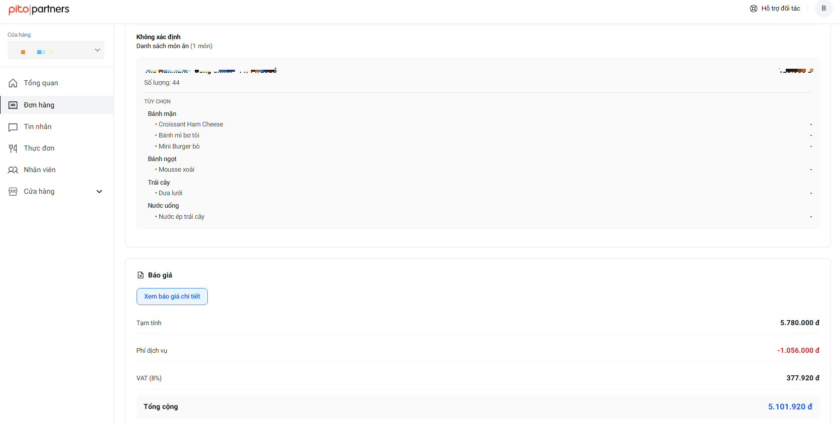 Chọn “ PITO Platform” để xem các đơn hàng khách đặt online trên nền tảng pito.vn