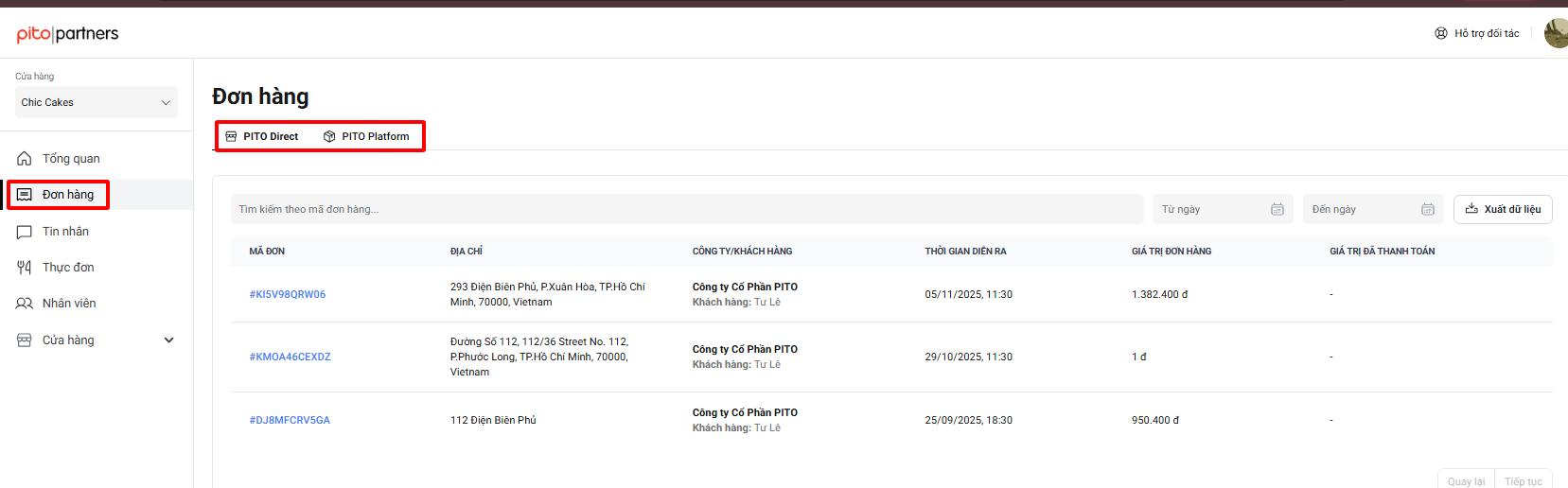 Xem danh sách đơn hàng Direct và đơn Platform